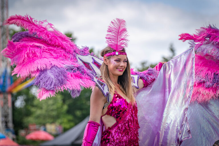 They are sparkly, feathery and oh so very pink! What more could you want?! Our stilt walking showgirls are equally at home at a Summer festival as they are meeting and greeting guests at a private party or corporate event. Dramatically eye catching, a fabulous feathery fiesta of pink and purple, these showgirls are all glam, class and indulgent extravagance. Up to 4 Pink and Purple showgirls are available either on stilts or on foot.