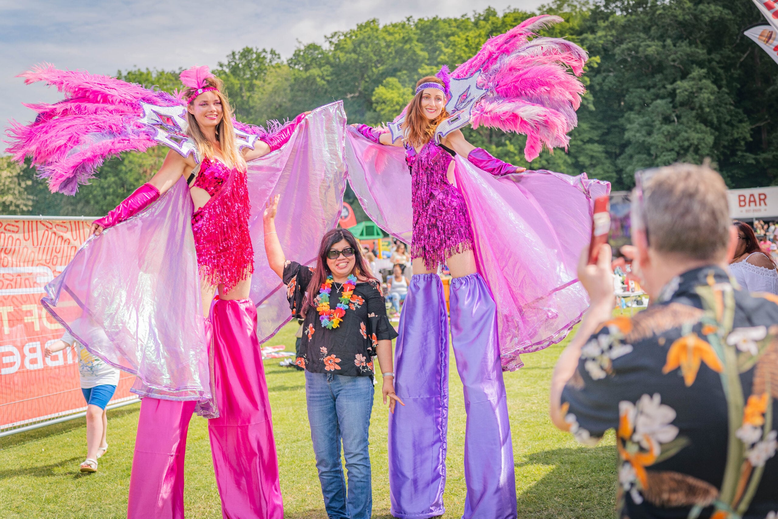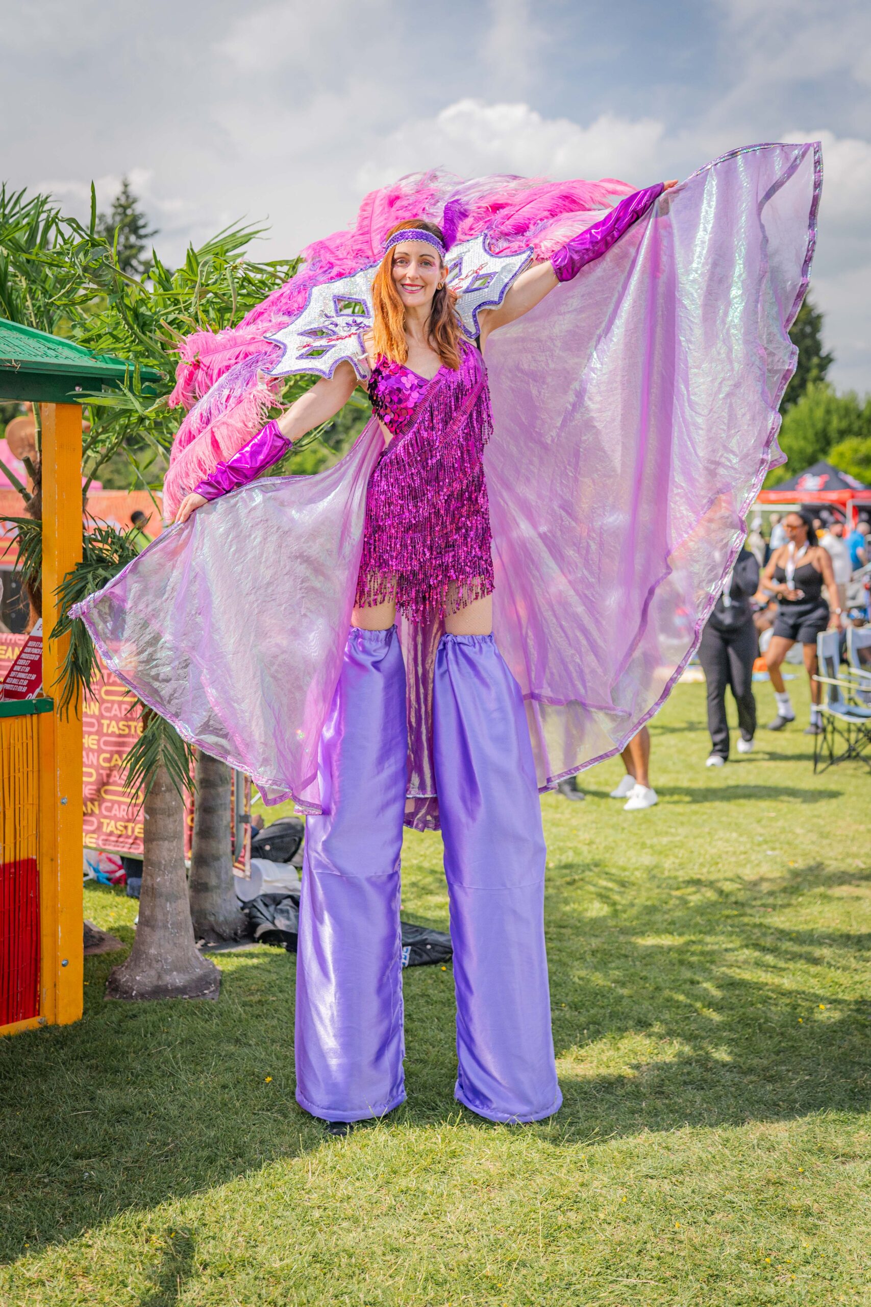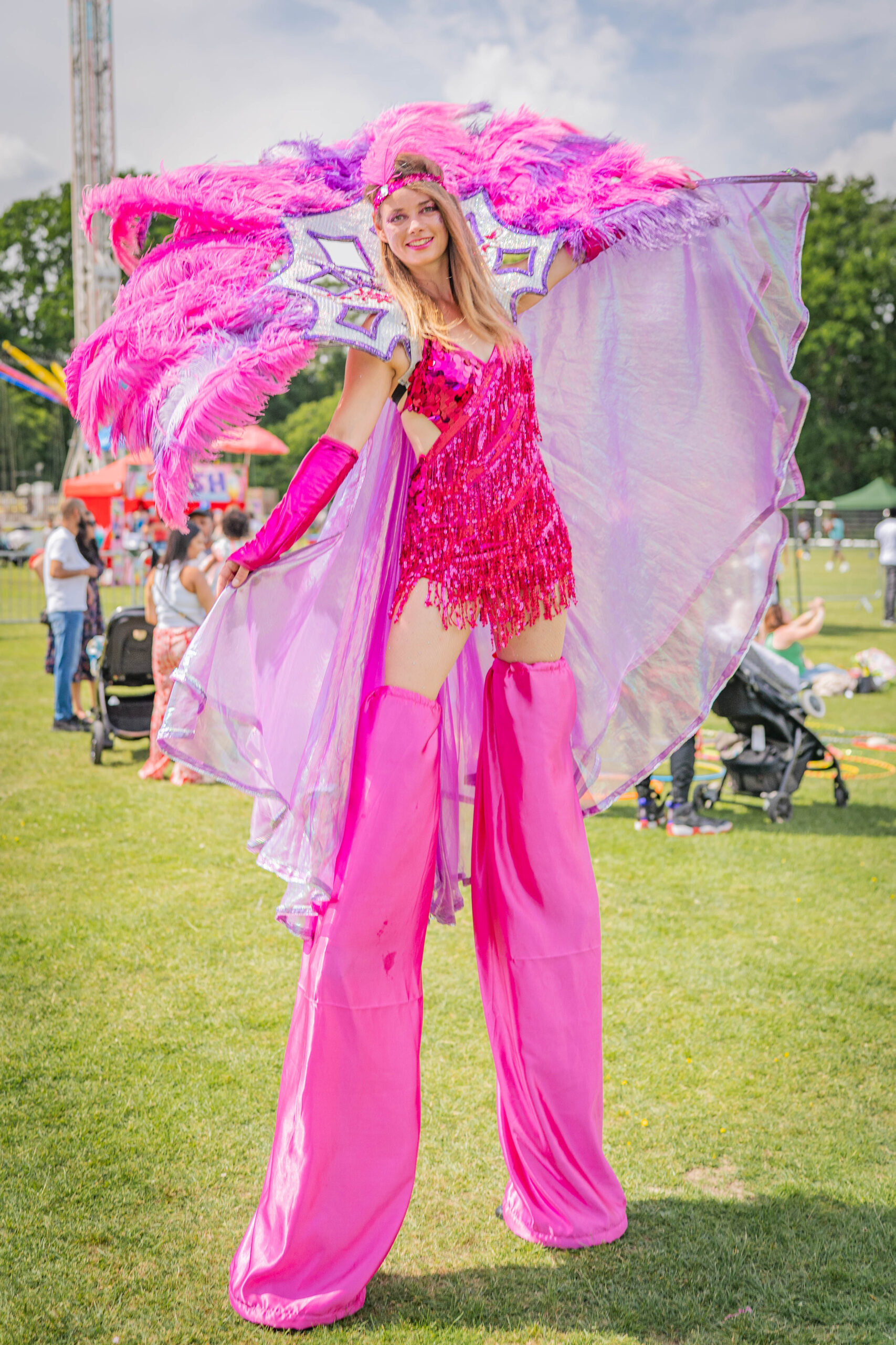 They are sparkly, feathery and oh so very pink! What more could you want?! Our stilt walking showgirls are equally at home at a Summer festival as they are meeting and greeting guests at a private party or corporate event. Dramatically eye catching, a fabulous feathery fiesta of pink and purple, these showgirls are all glam, class and indulgent extravagance. Up to 4 Pink and Purple showgirls are available either on stilts or on foot.