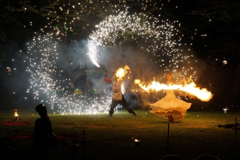 Fire can be performed in light rain but heavy rain becomes a safety concern as performers cannot see clearly and stages can get slippery. For both performer and audience safety, fire cannot be performed in strong winds. The performers will do everything reasonable in their power to ensure a performance goes ahead. This includes agreeing alternative set times to avoid inclement weather or bringing LED props incase an indoor show is a possible alternative.