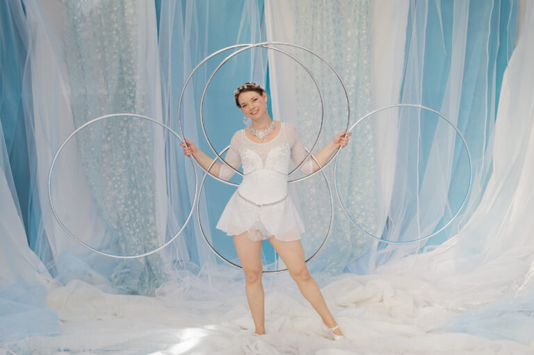 Choose from a roaming or stationary freestyle hula hoop performance or a stage show. All of our performances use multiple hula hoops which match the costume. Our hula hooper will engage and interact with your guests, amazing them with her tricks as she either moves around your event or is stationed in one location. Stage shows are choreographed to music and are short, high energy performances.