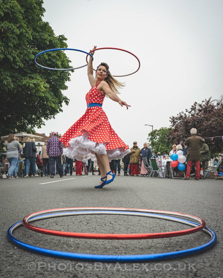 Unless you have booked a stage show, the hula hooper can be positioned anywhere at your event that you would like.
