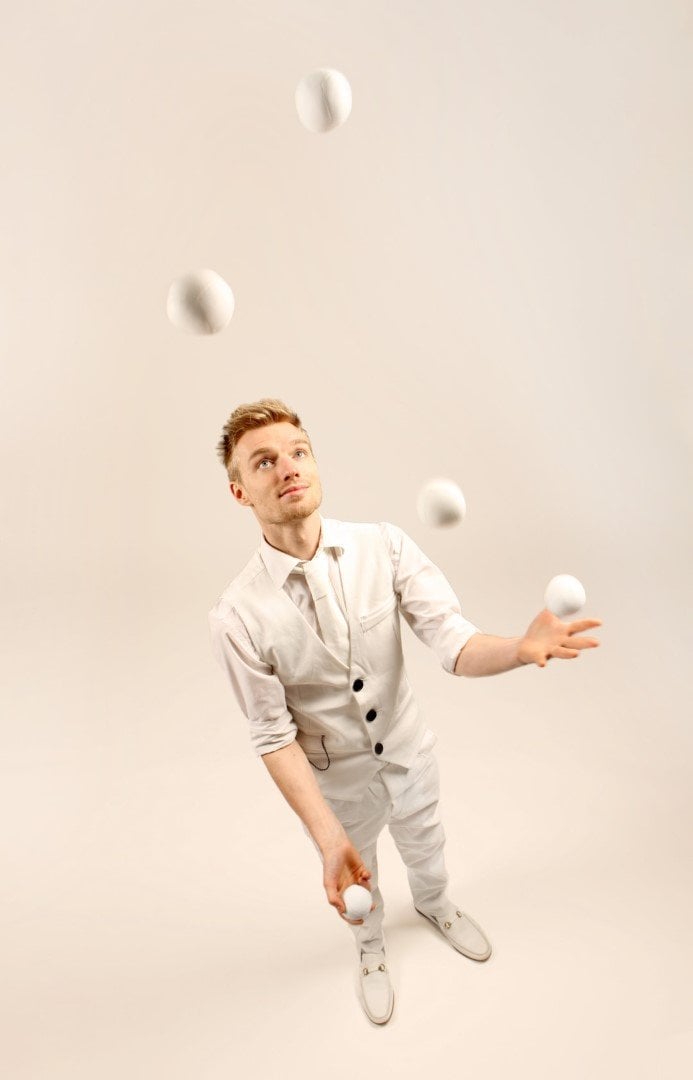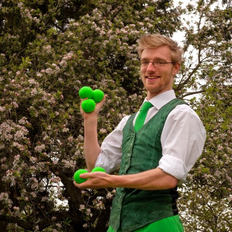 Our juggler will perform 3 ambient/roaming juggling sets which are each 30 minutes long.