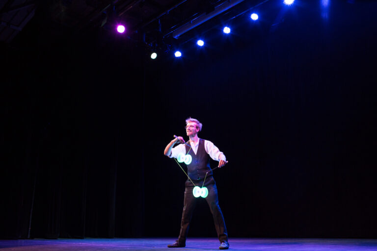 For a feature show (stage show) our juggler would need 5m ceiling height and a minimum of 6m stage width.